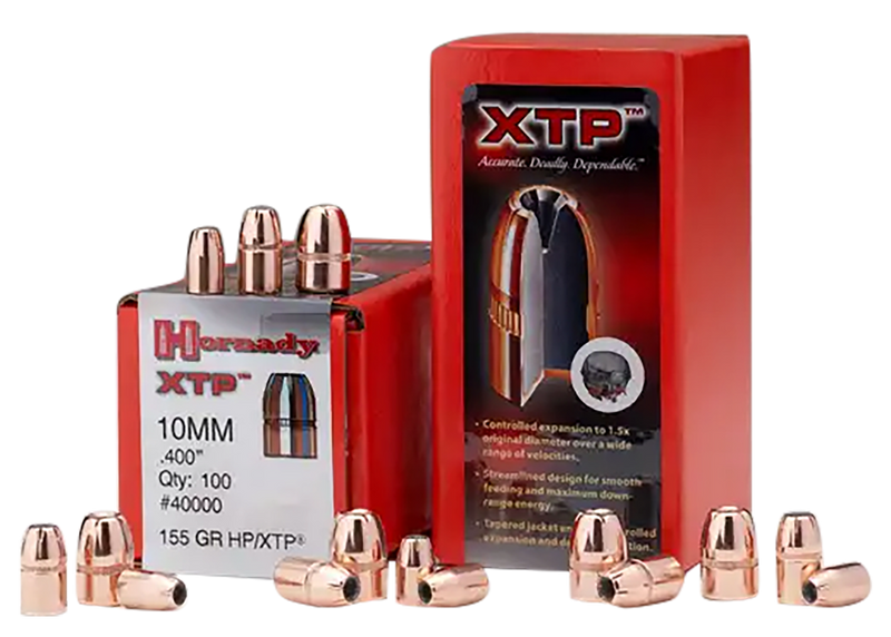 Hornady XTP bullets are jacketed hollow point projectiles designed for handgun reloading in 9mm caliber with a .355" diameter and 147 grain weight. These bullets feature a lead core with copper jacket construction and are engineered for reliable expansion across a wide range of handgun velocities. Each box contains 100 bullets, suitable for hunting, self-defense, target shooting, and law enforcement applications.