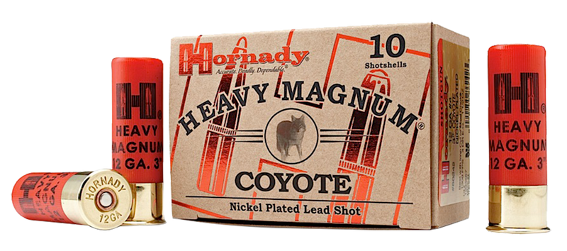 Hornady Heavy Magnum Coyote shotshells are designed for predator hunting at ranges up to 50 yards. Each 3-inch 12 gauge shell contains 1.5 ounces of nickel-plated BB shot loaded to 1300 fps velocity with Hornady's Versatite wad for excellent pattern density and minimal pelt damage.