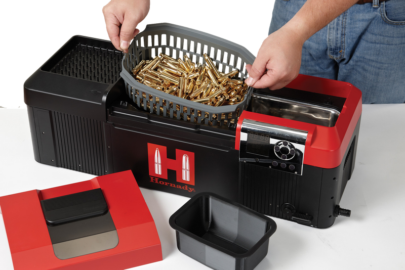 The Hornady Hot Tub is a 9-liter ultrasonic cleaner designed to remove dirt, grime, and residue from cartridge cases, gun parts, and metal equipment. It features four transducers, five temperature settings, a degas function, drain valve, and includes a 1.7-quart inner tank with small parts basket. Compatible with all calibers and powered by 110V.