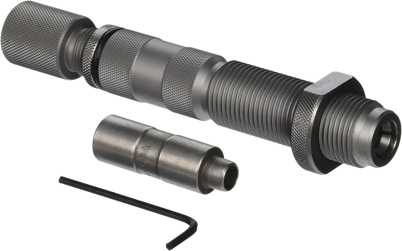 This case-activated bullet feeder die features a twin collet system engineered to reliably feed one bullet at a time, constructed from high-grade solid steel for years of dependable reloading use. Compatible with any progressive press via standard 7/8-14 inch thread, it accommodates both 40 S&W and 10mm Auto cartridges. The die's durable steel collets ensure consistent performance across thousands of reloading cycles.
