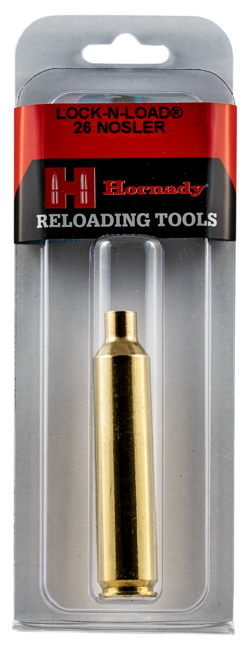 Hornady Lock-N-Load Modified Cases are specially engineered for use with Lock-N-Load Precision gauges, featuring fine threading for secure attachment and precise chamber alignment. The case neck is made perfectly round and slightly opened to allow standard diameter bullets to slip in effortlessly while maintaining concentric alignment for maximum reloading precision. This is a single modified brass case in .30 Nosler caliber.