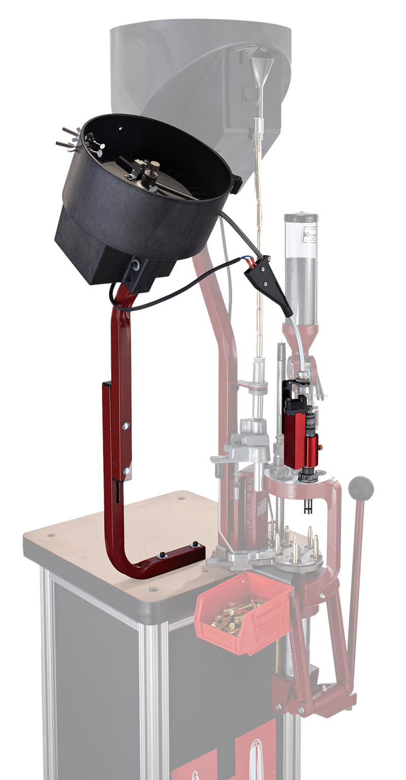 The Lock-N-Load Rifle Bullet Feeder is a complete unit designed for 22 caliber bullets with industry-standard 7/8"-14 die threads, compatible with the Lock-N-Load AP reloading press and other standard reloading equipment. It accommodates cartridge sizes from .221 Fireball through .220 Swift, with a conversion kit available for 30 caliber bullets. This feeder automates bullet feeding during the reloading process, improving efficiency and consistency.