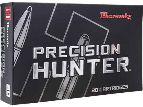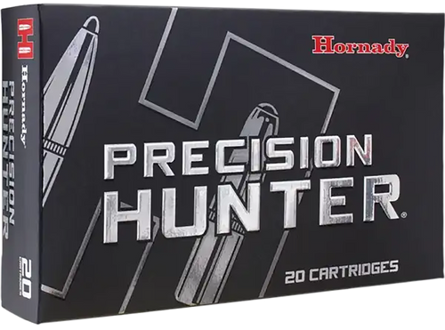 Hornady Precision Hunter ammunition in 30-06 Springfield features a 178-grain ELD-X bullet designed for match-accurate hunting performance. This ammunition produces a muzzle velocity of 2750 fps and 2989 ft-lbs of energy with a ballistic coefficient of 0.552 for superior long-range accuracy. Loaded in reloadable brass cases with clean-burning propellants for consistent shot-to-shot performance.