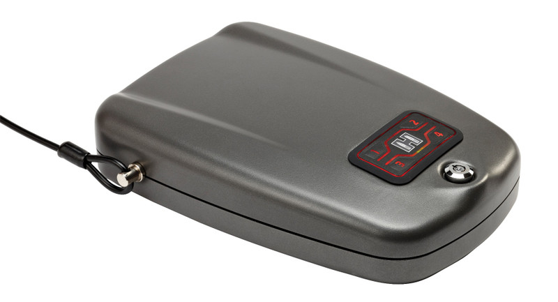 The Hornady Rapid Safe 2700KP XL is an electronic lock box constructed of thick 14 gauge steel with multiple access methods including RFID, programmable 4-6 digit keypad, and key entry. The safe holds handguns and valuables securely, exceeds ASTM International safety standards for child and pry resistance, and includes both AC and battery power options for reliable operation.
