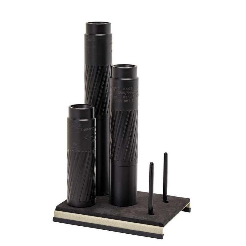 The Hornady Square-Lok Suppressor Rack is a modular storage solution designed to hold up to 5 suppressors using the innovative Square-Lok locking system. The steel construction provides secure, firm holding with flexible configuration options to accommodate various storage needs and space constraints.
