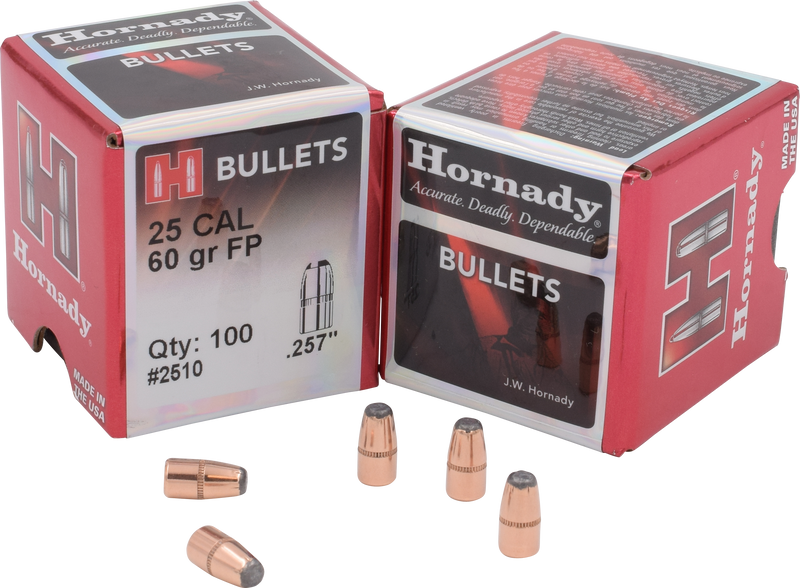 Hornady Traditional Varmint 25 Cal .257" 60 gr Flat Point Reloading Bullets - 2510