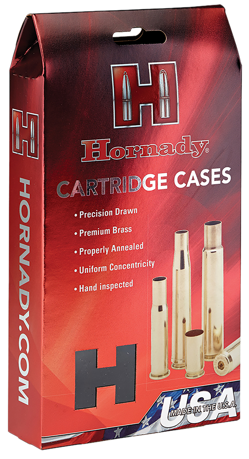 Hornady unprimed brass rifle cartridge cases for .270 Winchester reloading. These cases are manufactured to tight tolerances with uniform case wall thickness and high concentricity to ensure proper bullet seating, consistent velocities, and improved accuracy. Each box contains 50 unprimed cases suitable for reloaders.