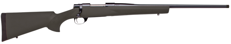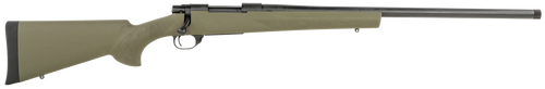 The Howa M1500 Hogue is a bolt-action rifle chambered in 6.5 Creedmoor with a 24" blued heavy barrel and 1:8" twist rate. It features a drilled and tapped stainless steel receiver, Hogue OverMolded black synthetic stock, threaded muzzle, HACT two-stage trigger, and sling swivel studs. This right-hand rifle weighs 8.25 lbs and has a 5+1 round capacity.