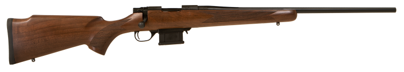 The Howa M1500 Mini Action Hunter is a compact bolt-action rifle chambered in 350 Legend with a 16.25" heavy threaded barrel and 3+1 capacity. Features a drilled and tapped steel receiver, walnut fixed stock, two-stage match trigger, and 3-position safety. Weighs 7 lbs with an overall length of 39.5", ideal for hunting in tight spaces.