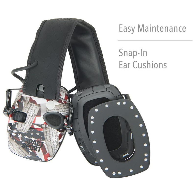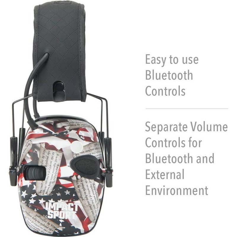 The Howard Leight Impact Sport provides 21 dB noise reduction rating (NRR) electronic hearing protection designed for shooting and hunting applications. Features digital sound compression with a 0.5 millisecond reaction time to safely suppress loud impulse noise while amplifying ambient sounds through dual omni-directional microphones at 5X amplification. Includes Bluetooth connectivity for wireless audio integration.