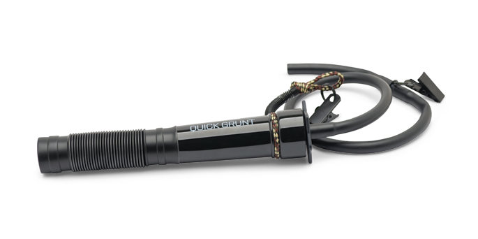 Hands-free deer grunter call designed to mimic natural deer vocalizations for hunting applications. Features a hands-free design that allows hunters to operate the call without using their hands. Dimensions: 12.3" L x 5.8" W x 1.9" H.