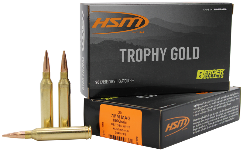 HSM Trophy Gold Extended Range 7mm Rem Mag 180gr Berger Hunting VLD Match Ammunition, 20rd Box - 7MAG180VLD