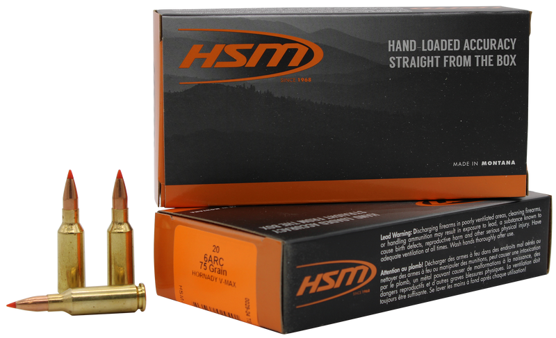 HSM 6mm ARC 75gr V-Max Rifle Ammunition, 20 Rounds Per Box - 6ARC1N