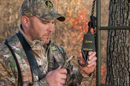 This 30-foot safety lifeline is designed for treestand users and includes a single carabiner for secure attachment. The lifeline provides fall protection and is an essential safety accessory for elevated hunting platforms. Meets industry safety standards for hunting applications.