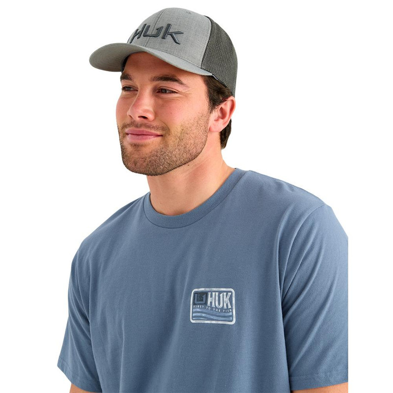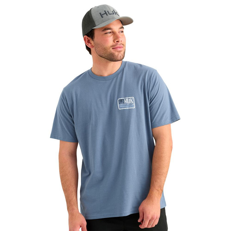 The Huk Born Wave Tee is crafted with a 50/50 cotton/performance blend designed for all-day comfort and performance. This short sleeve shirt in stormy blue is suitable for anglers and outdoor enthusiasts. Available in size large.