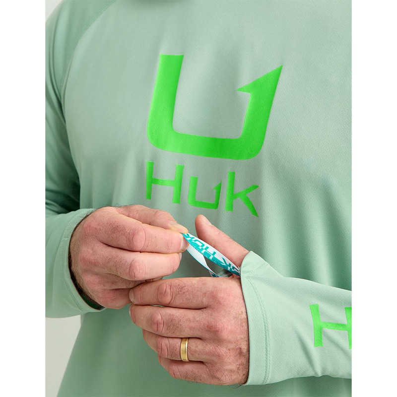 HUK Icon Crew Long Sleeve Shirt Fog Green - H1200573-315-L