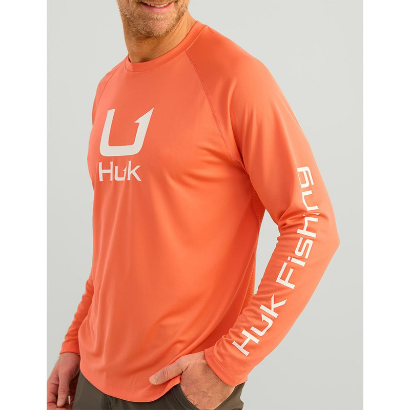 HUK Icon Crew Long Sleeve Shirt, Salmon - H1200573-821-XXL