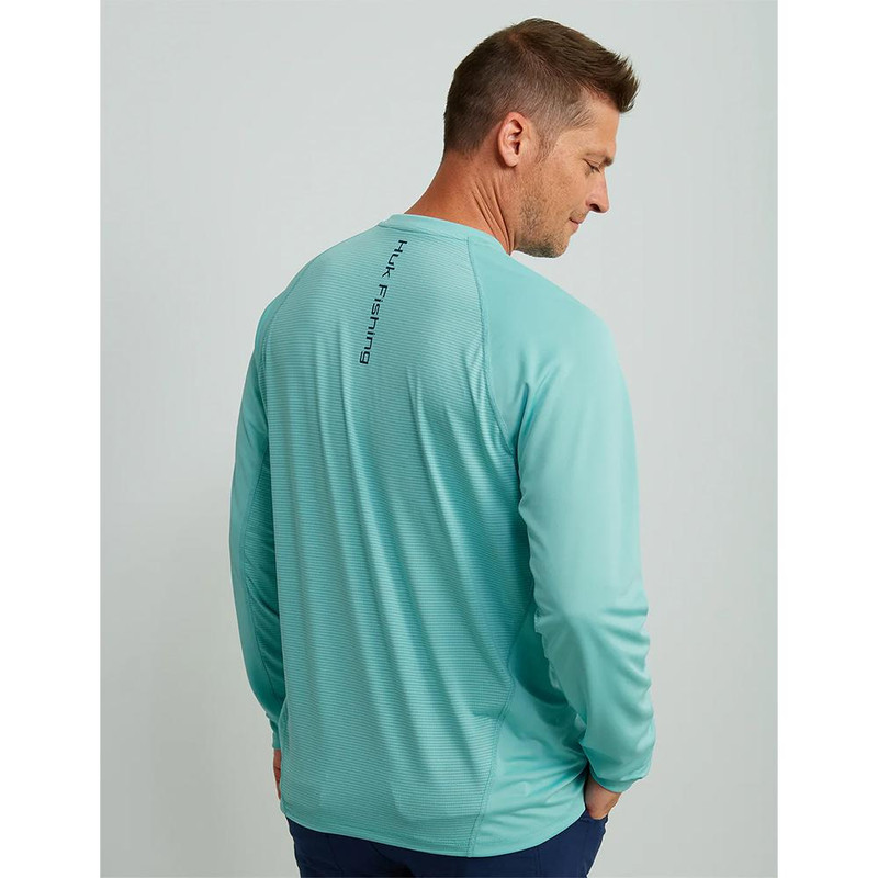 The HUK Icon Crew features full back panel wicking mesh with 50+ UPF sun protection and Internal Cooling Element (I.C.E) technology for enhanced breathability and quick dry time. The raglan sleeve design provides full range of motion, while antimicrobial treatment reduces odor. Ideal for fishing and outdoor activities in warm conditions.