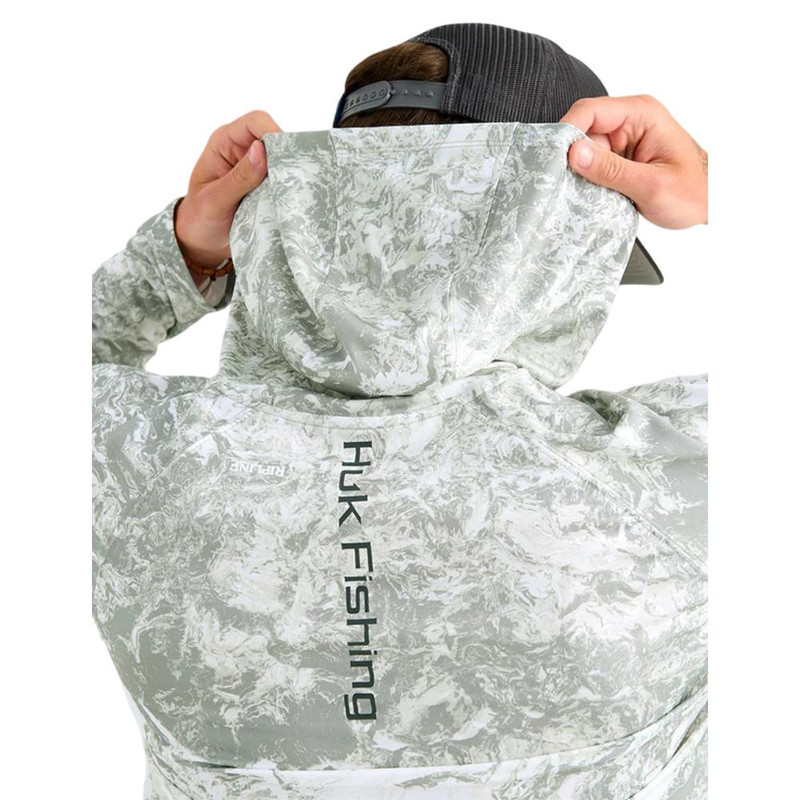 This HUK performance hoodie features an exclusive Mossy Oak Seagrass pattern designed for water-based activities and fishing. Built with HUK Performance Technology to handle moisture and weather elements. Available in size Medium.
