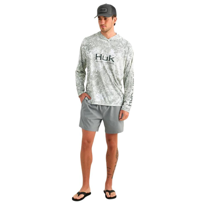 This HUK performance hoodie features an exclusive Mossy Oak Pursuit pattern in Seagrass colorway designed for water-based activities. Built with HUK Performance Technology to handle challenging weather conditions including choppy seas and swirling skies. Available in size Small with dropship options including economy, next-day air, second-day air, and ground delivery.