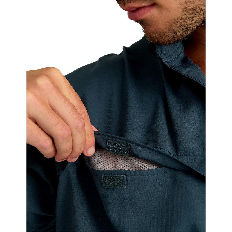 The HUK Tide Point short sleeve shirt is designed for water-based activities with 30+ UPF sun protection and mechanical stretch fabric. Features quick-drying material with moisture transport, mesh-backed chest pocket, perforated back ventilation, and an interior eyewear wipe.