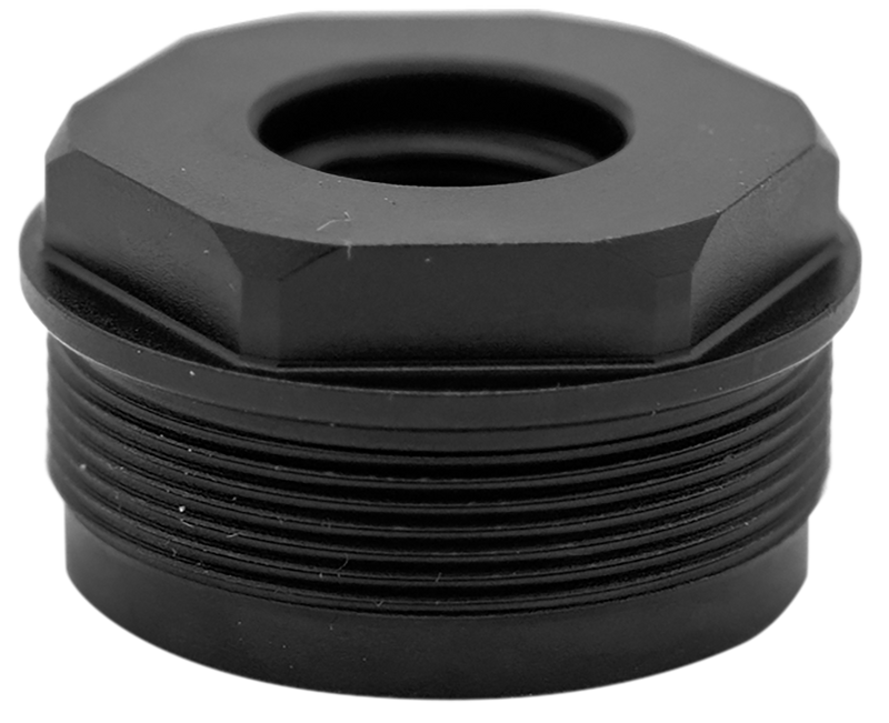 This is a direct thread adapter designed for use with HUXWRX RAD 9 and RAD 45 suppressors on fixed barrel systems. Made from 17-4 stainless steel with black nitride finish for enhanced wear and corrosion resistance, it features wrench flats for easy installation and removal.