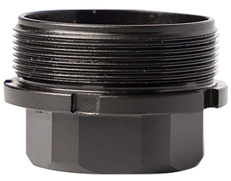This is a mounting adapter that allows HUB-compatible suppressors to attach to Xeno-compatible muzzle devices. Made of steel with a matte black finish, it features a 1.375x24mm thread pattern and is designed for quick-disconnect mounting without tools.