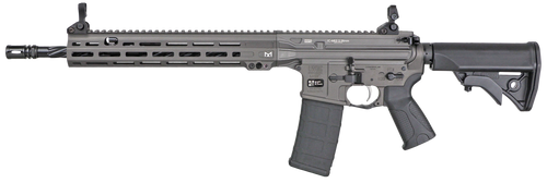 The LWRC ICMKII is a 5.56 NATO semi-automatic rifle with a 14.7" pinned and welded spiral-fluted barrel and threaded muzzle (1/2x28). It features a fully-ambi lower receiver, A5 2-position gas block, monoforge upper, LWRC Skirmish back-up sights, and a compact adjustable collapsible stock, with an overall length of 30.8" to 34" and weight of 6.5 lbs. It comes with one 30-round magazine and holds 30+1 rounds total.
