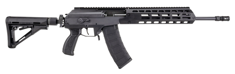 Semi-automatic rifle chambered in 5.45x39mm with a 16" cold hammer forged barrel and 1:7.5" twist rate. Features a free-float M-LOK handguard, side-folding adjustable buttstock, ambidextrous safety lever, and Picatinny rail system. Ships with one 30-round magazine and weighs approximately 8.12 lbs.