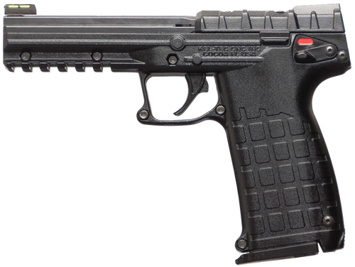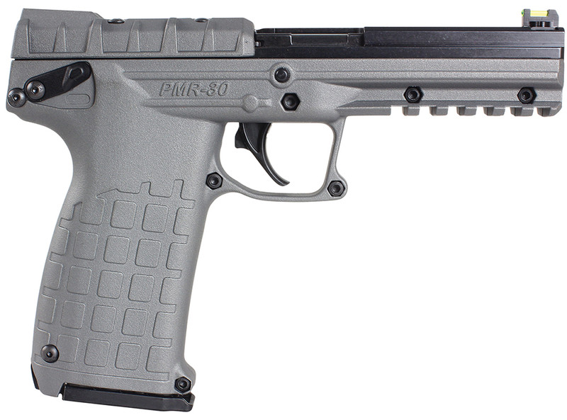 The Kel-Tec PMR30 is a semi-automatic pistol chambered in .22 WMR with a 4.3" fluted steel barrel and 30+1 round capacity. It features an ambidextrous safety lever, fiber optic sights, and a gray textured polymer frame with Picatinny accessory rail. Weighing 14 oz, this compact pistol is suited for personal protection and sport shooting.