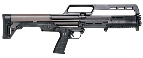 The KS7 Gen2 is a lightweight 12-gauge bullpup pump-action shotgun with a 3" chamber, 18.5" barrel, and 6+1 capacity. Weighing 5.9-6.8 lbs and measuring 26.1" overall, it delivers full-length performance in a compact package with a green synthetic stock, black steel barrel, and five-slot Picatinny rail on the forend for accessory mounting.