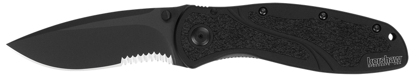 The Kershaw Blur is a 3.4" drop point folding knife with a partially serrated 14C28N stainless steel blade featuring a DLC black coating for corrosion resistance. It features SpeedSafe assisted opening, a black anodized aluminum handle with thumb stud operation, and a pocket clip for everyday carry. Overall length is 7.9" when open, and it weighs 3.9 oz.