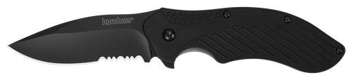 The Kershaw Faultline is a practical 3" drop point folding knife with an 8Cr13MoV stainless steel blade finished in black oxide. It features a glass-filled nylon handle in black and olive drab, a flipper opening mechanism, and an integrated pocket clip for everyday carry in a truck box, go-bag, or tactical pants pocket.