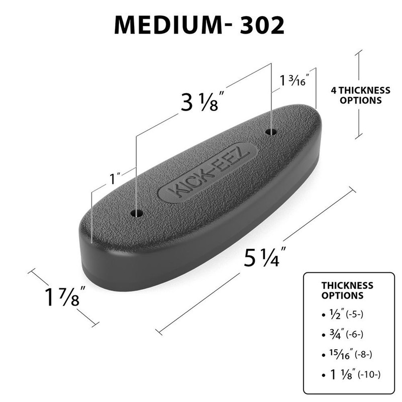 Kick-EEZ All Purpose Recoil Pad, 5 1/4" x 1 7/8" x 15/16", Black - 302-8-M-B