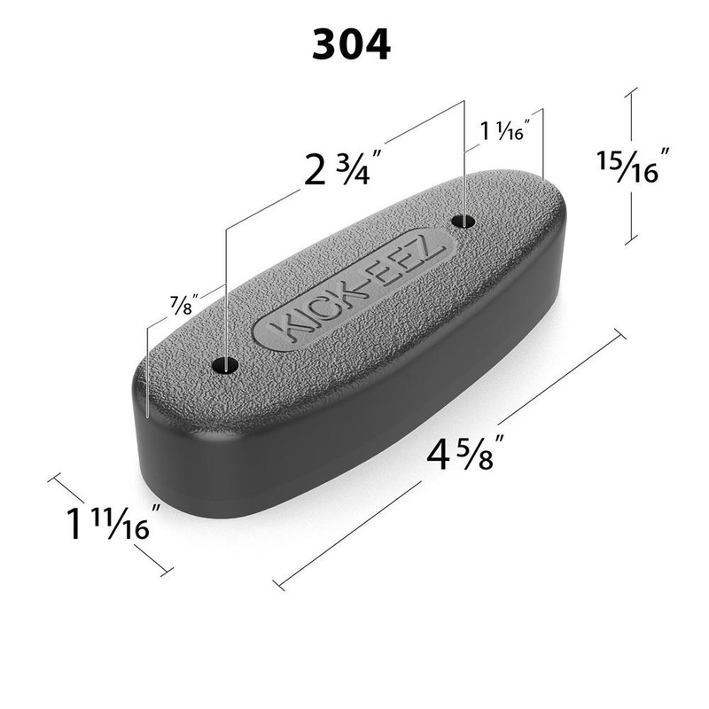 The Kick-EEZ Junior Recoil Pad is designed for shortened rifle stocks with screw holes spaced 2 3/4" apart for secure mounting. This durable recoil pad features premium quality materials that provide comfort and support while reducing felt recoil. Dimensions are 1-11/16 x 4-5/8 x 15/16 inches, making it ideal for junior-sized and youth rifle stocks.