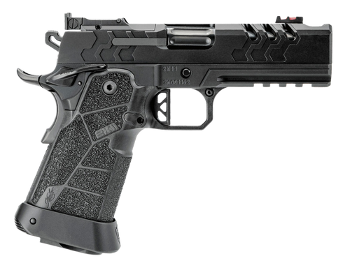 Semi-automatic 1911-style pistol chambered in 9mm Luger with a 4.25" bull barrel and 19+1 round capacity. Features an optics-ready slide with RMR footprint, ambidextrous thumb safety, fiber optic front sight, GT trigger, and MJD composite grip module. Weighs 35 oz. with an overall length of 7.79".