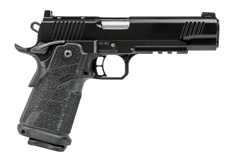 Semi-automatic 1911-style pistol chambered in 9mm with a 5" barrel and 10+1 round capacity. Features an aluminum frame with carbon fiber grips, match-grade trigger, tritium night sights, and optics-ready slide with RMR footprint. Weighs 33 oz with an overall length of 8.7".