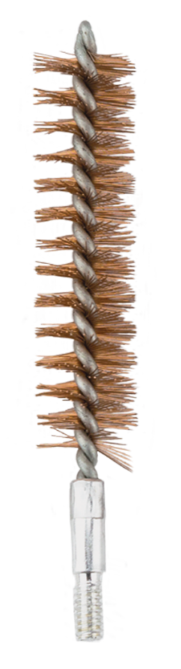Precision-made bore brush with straight phosphor bronze bristles designed for safe and effective removal of fouling and powder residue from .357/.380 caliber handguns. Features 8-32" thread connection and straight wire bristles that provide superior cleaning power without damaging rifled grooves. The brush maintains its shape and thickness under cleaning force.