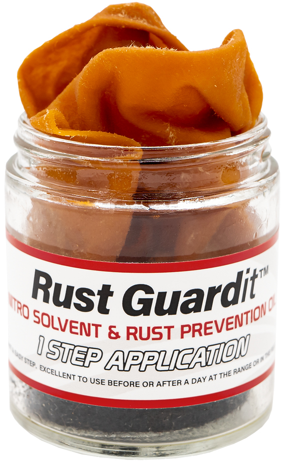Rust Guardit is a rust prevention oil designed to protect firearms from corrosion and oxidation. The product comes in a jar format and includes a chamois cloth for application. This preventative maintenance oil is suitable for regular gun care and storage protection.