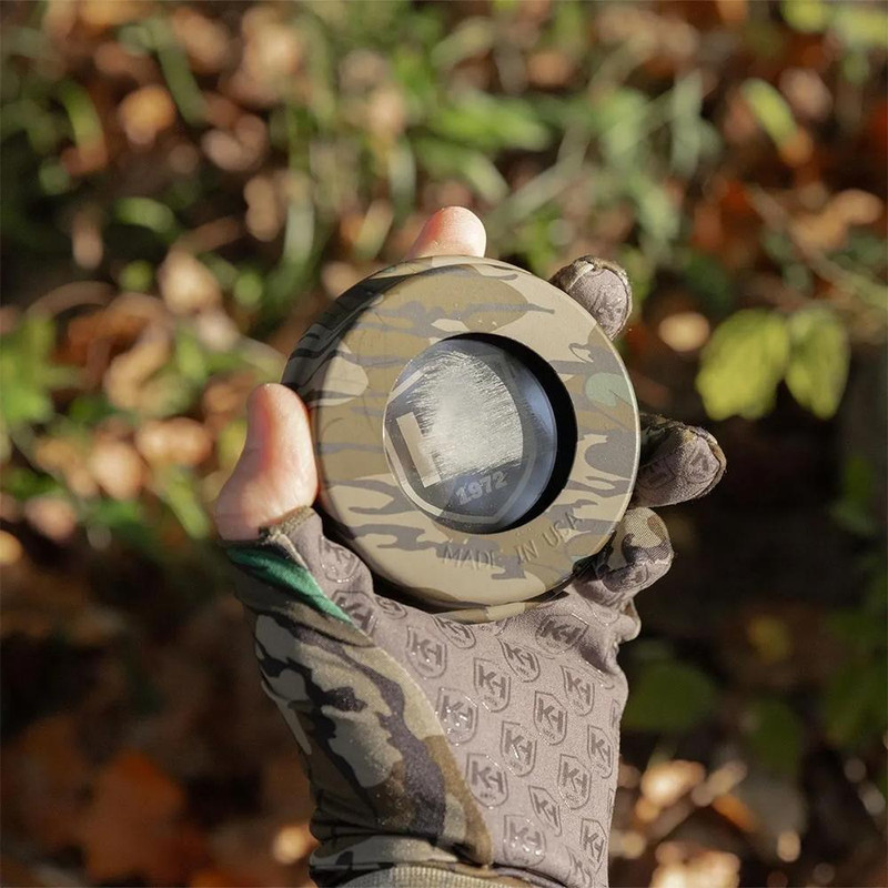 This pot call features an aluminum top for sharp, high-pitched volume when calling distant turkeys and a glass bottom for clear, soft sounds when gobblers are in close. The durable injection-molded polymer construction with Mossy Oak Greenleaf finish provides both functionality and concealment. Includes one call unit ready for conditioning and use.