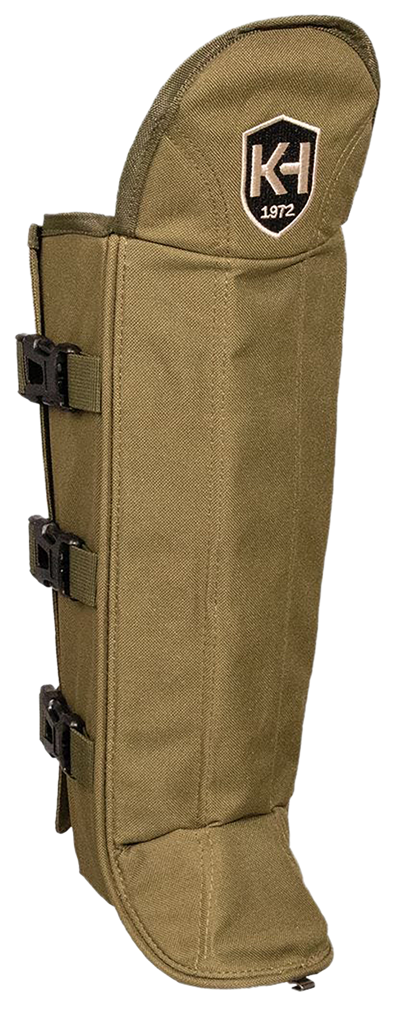 Lightweight snake gaiters with internal polycarbonate shield protecting ankles and calves 360 degrees. Features adjustable straps for a secure, form-fitting fit and are significantly more comfortable than traditional snake boots. Designed for hunting and outdoor activities in snake-prone environments.