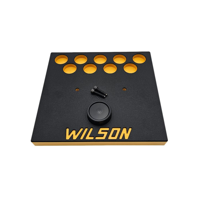 The Wilson Case Trimmer Platform is a stable workspace accessory designed to complement L.E. Wilson trimmer series equipment. It features dedicated storage for up to nine case holders and works with both Wilson Regular and 50 Caliber Trimmer Stands, providing efficient organization for precision reloaders.