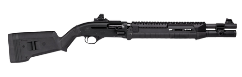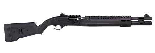 Semi-auto shotgun chambered in 12 gauge 3" with an 18.5" black oxide heat shield barrel and 7+1 capacity. Features a black aluminum receiver with Picatinny rail, Magpul polymer stock, Beretta patrol forend, and Super Duty front sight. Weighs 9 lbs and includes Cylinder/Improved Cylinder chokes.