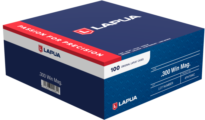 Lapua unprimed brass cases for .300 Winchester Magnum cartridge reloading, sold in boxes of 100. These cases are designed for handloaders seeking quality brass for competitive target shooting, hunting, and long-range applications with bullet weights from 165 to 200 grains.