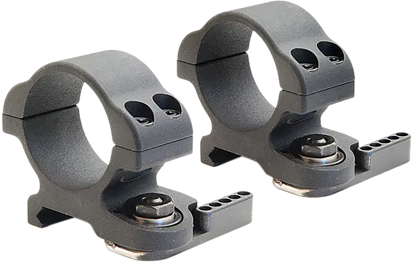 These LaRue Tactical QD scope rings feature a 30mm tube diameter and ultra-low profile design for mounting on 1913 Picatinny rails. The quick-detach system allows for rapid scope removal and remounting while maintaining zero.