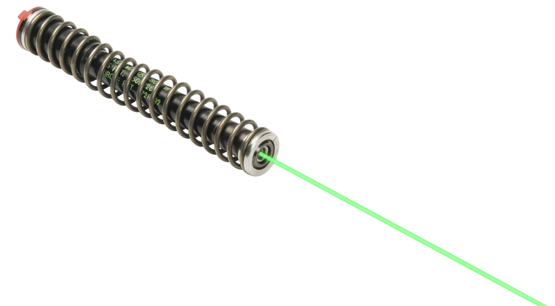 This guide rod laser replaces the factory spring guide assembly in Glock 19, 23, 32, and 38 pistols (Gen 1-3) with a high-intensity green laser sighting system for improved target acquisition. The 5mW green laser (520nM wavelength) projects a 0.63" dot at 20 yards with an effective range of 50 meters and features a pulsing function for enhanced visibility. Installation is user-friendly without requiring gunsmithing, and the unit is constructed from aircraft-grade aluminum with genuine Wolff springs and uses a 393 battery.
