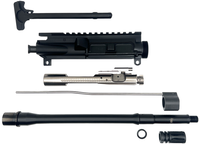 This is a complete upper receiver assembly kit for AR-15 platforms chambered in 223 Remington/5.56 NATO. It features a 13.7" cold hammer forged barrel with mid-length gas system, M16 bolt carrier group, A2 flash hider, and standard charging handle. The kit requires no gunsmith installation and comes ready to assemble to a compatible lower receiver.