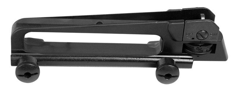 Mil-Spec AR-15 carry handle and rear sight assembly with black finish. Designed for standard AR-15 platforms, this accessory provides a traditional carry handle configuration. Dimensions: 9.6" length x 6.8" width x 3.0" height.