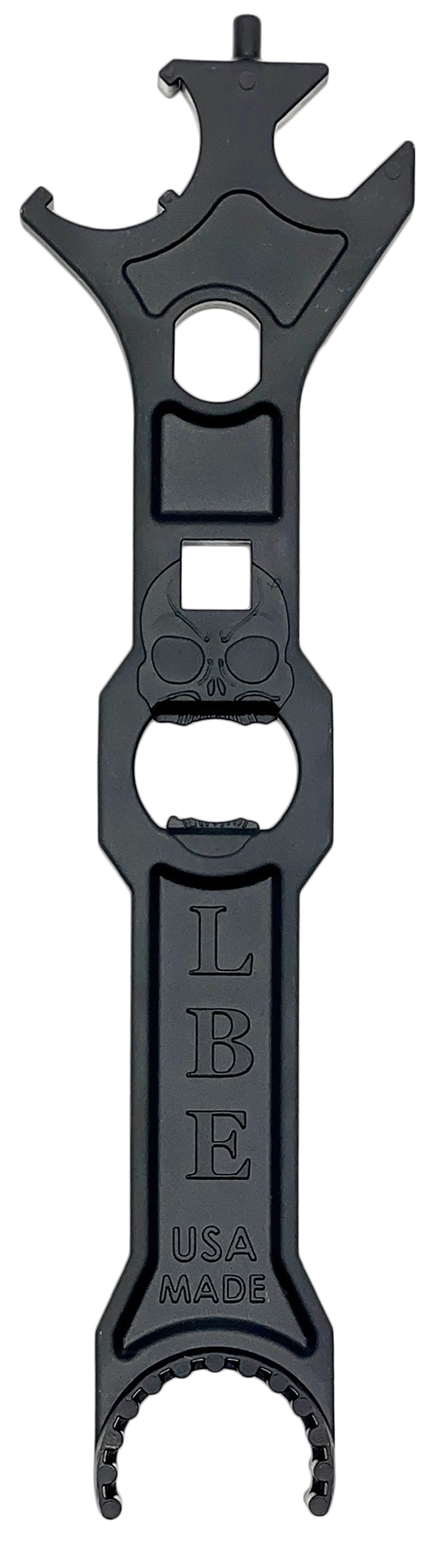 The LBE Unlimited Armorers Tool is a multi-purpose gunsmithing tool constructed from 4140 steel, designed specifically for AR-15 and AR platform rifles. This tool measures 14.4 inches in length and is used for field stripping, maintenance, and assembly work on AR-pattern firearms. The durable black steel construction provides reliable performance for armorer and gunsmith applications.