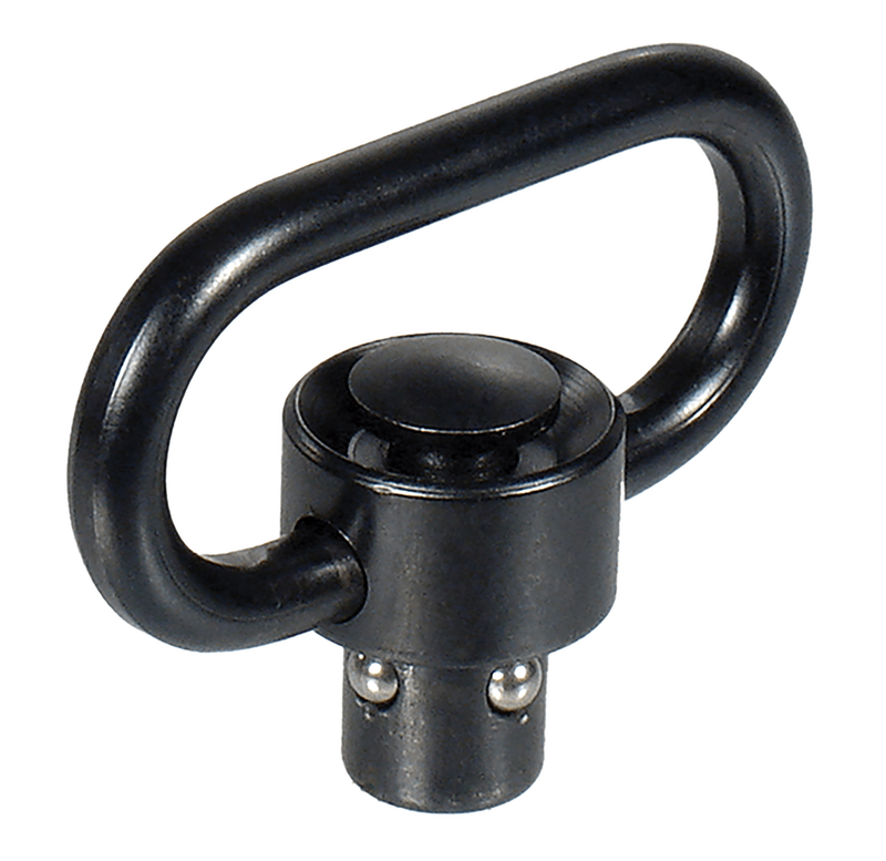 Quick detach sling swivel featuring a push-button release mechanism for rapid attachment and detachment. Constructed from steel with a 1.38" loop size, designed for use with standard sling hardware on rifles and shotguns.